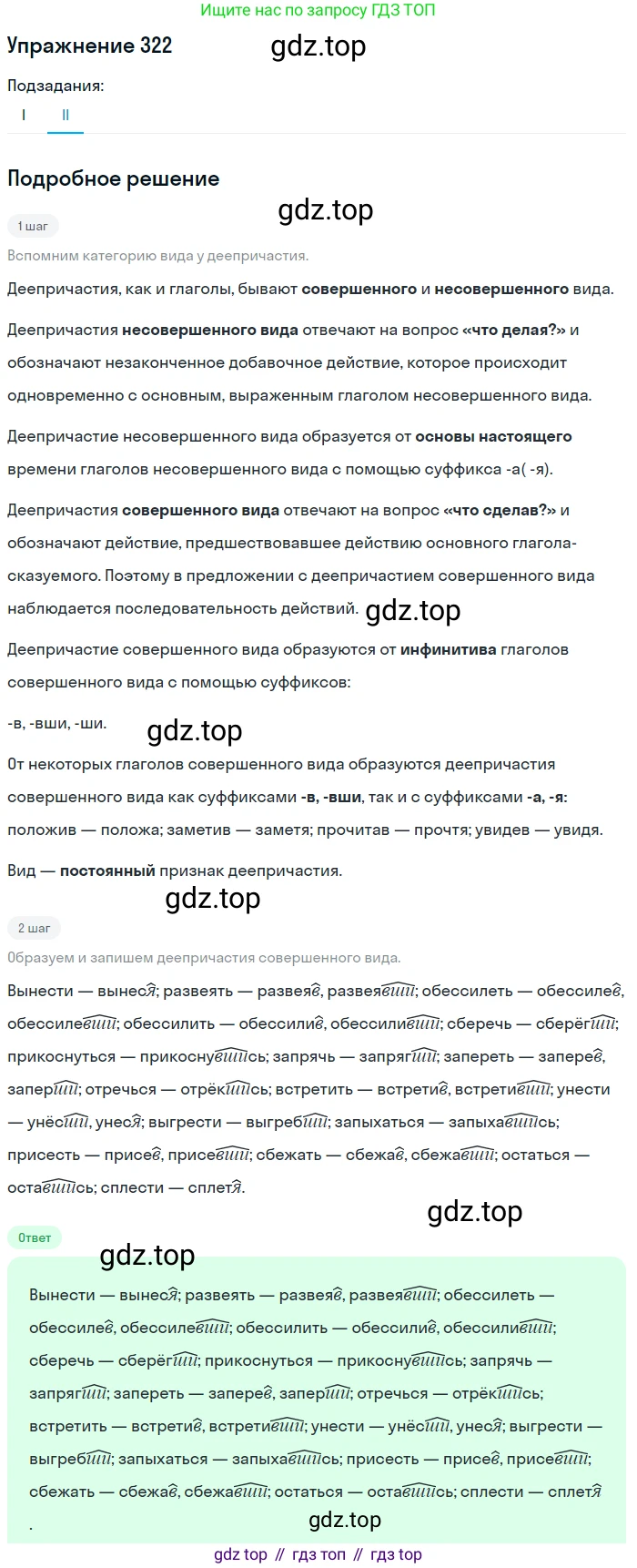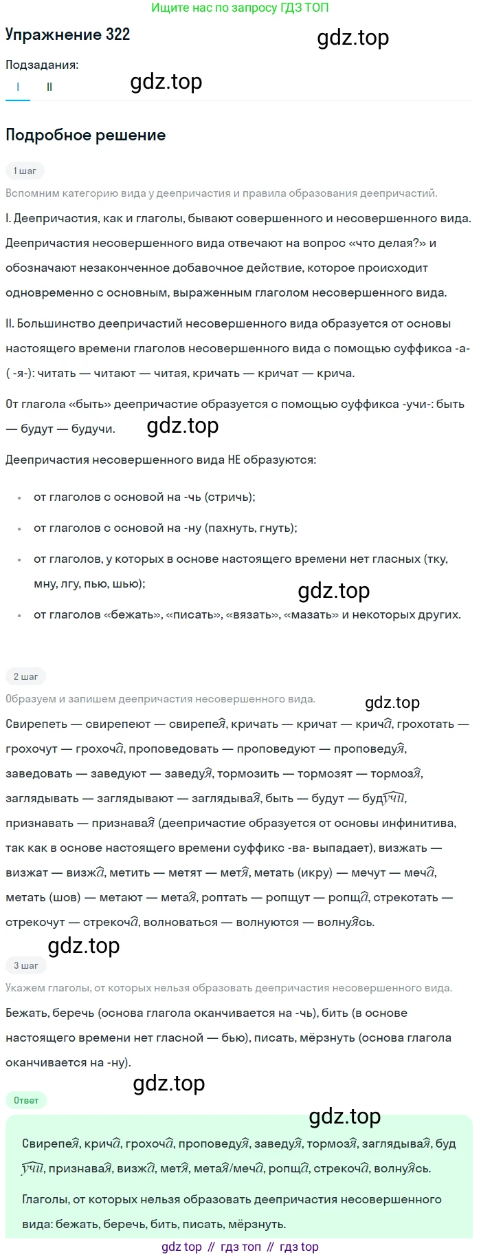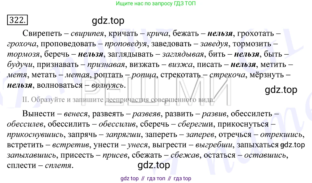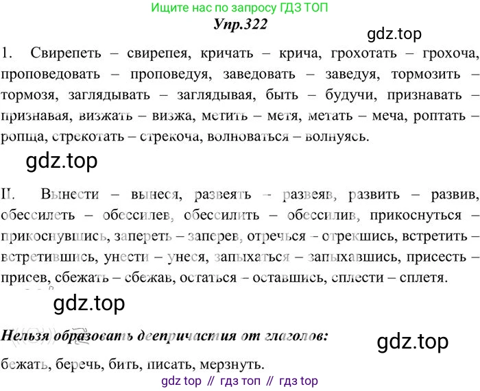 322. I. Образуйте и запишите деепричастия несовершенного вида. Укажите глаголы, от которых таких деепричастий образовать нельзя.