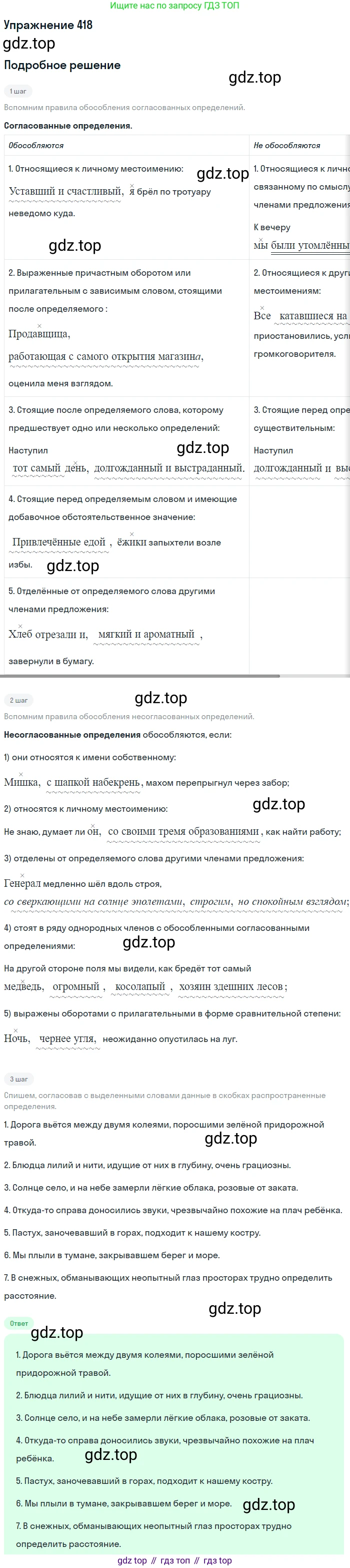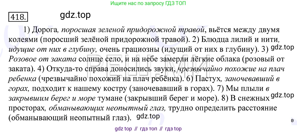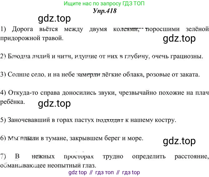 § 76. Построение оборотов с распространёнными определениями, выраженными причастиями и прилагательными. Предложения с обособленными и уточняющими членами предложения - номер 418, страница 278.