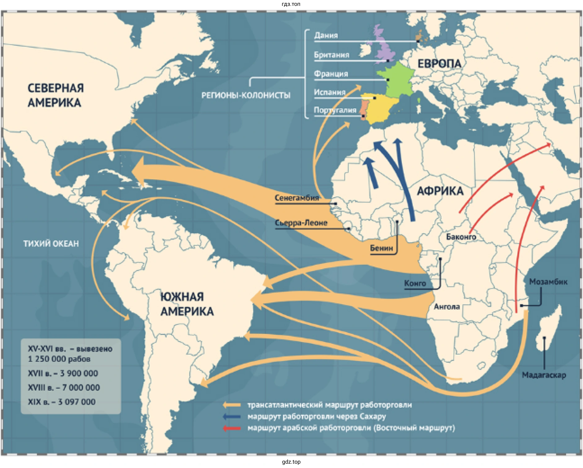 Как известна система рабства в США, была отменена только в 1865 году - на 4 года позже отмена крепостного права в России. Труд рабов особенно широко использовался в плантационном хозяйстве Юга. В настоящее время явление рабства в США считается одним из наиболее позорных эпизодов истории страны. Откуда кем, и куда доставлялись африканские невольники в Новый свет.