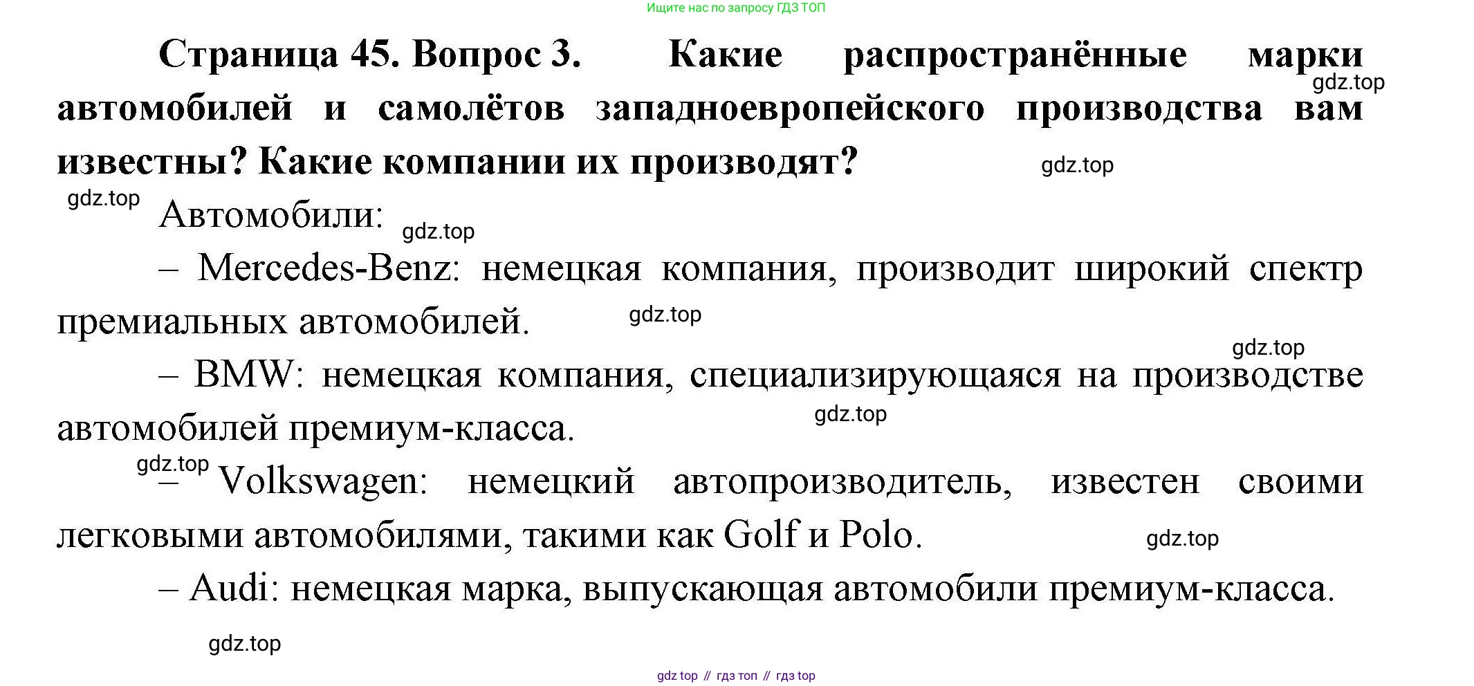 Какие распространённые марки автомобилей и самолётов западноевропейского производства вам известны? Какие компании их производят?
