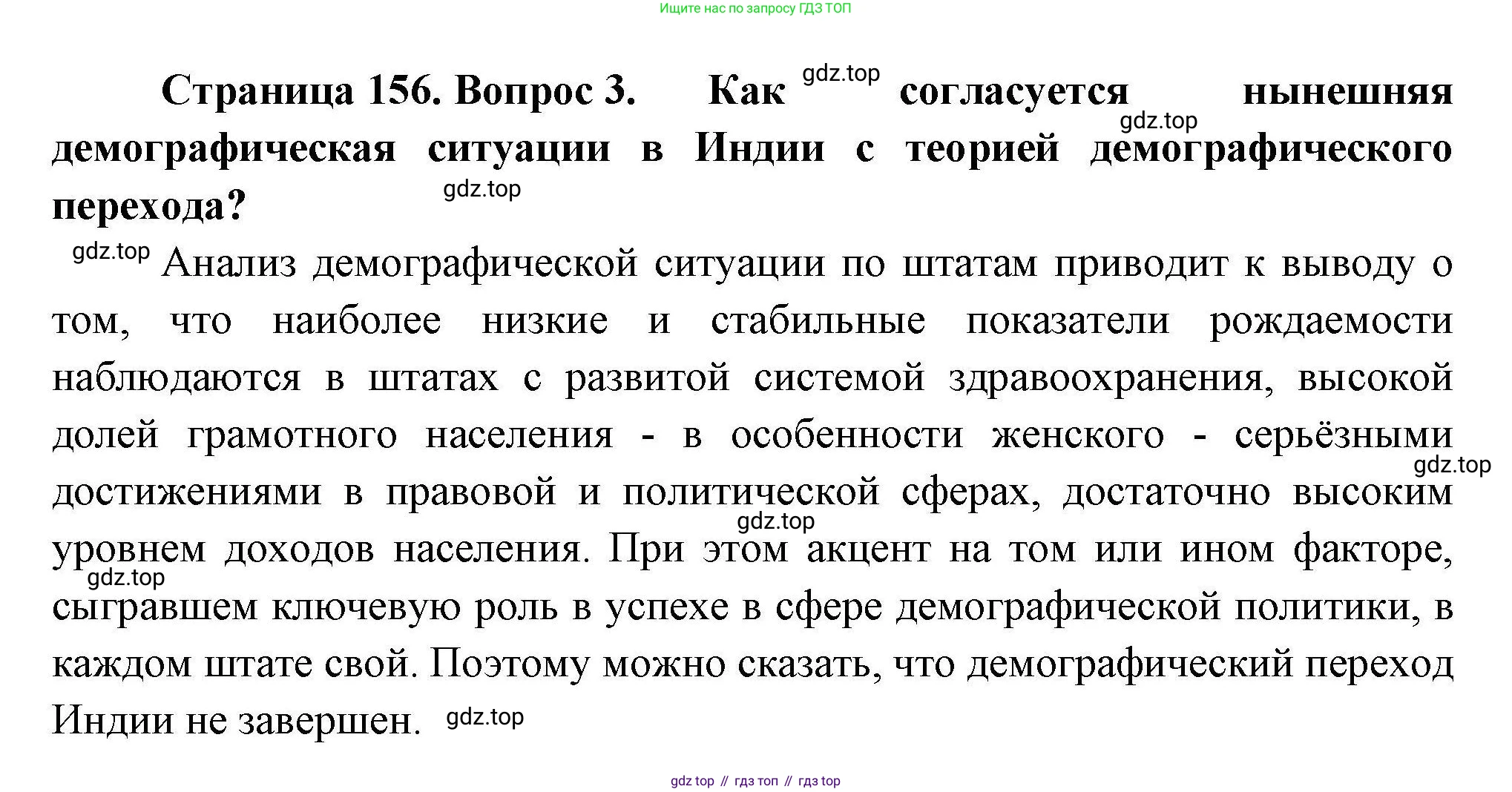 Теперь на нашем сайте ГДЗ.ТОП вы всегда легко и бесплатно найдёте условие с правильным ответом на вопрос «Как решить ДЗ» и «Как сделать» задание по географии к упражнению №3 (с. 156), авторов: Гладкий (Юрий Никифорович), Николина (Вера Викторовна), ФГОС (новый, красный) базовый и углублённый уровень обучения учебного пособия издательства Просвещение.