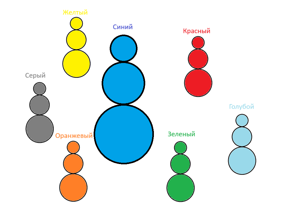 Внимание! Снеговик — достаточно сложный объект. Сложные объекты желательно изображать по частям. Нарисуйте каждый из кругов для снеговика отдельно. Поочерёдно выделите второй и третий круги (инструмент Выделить, Прозрачное выделение) и перетащите их в нужные места.