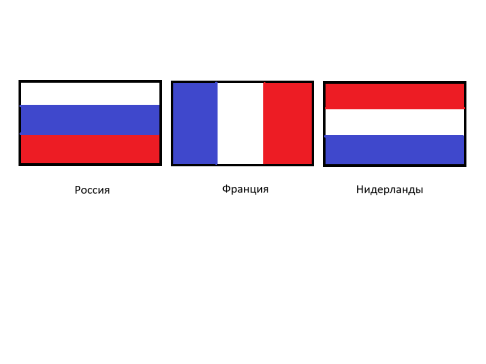 2. Изобразите государственные флаги России, Франции и Нидерландов и подпишите их.
