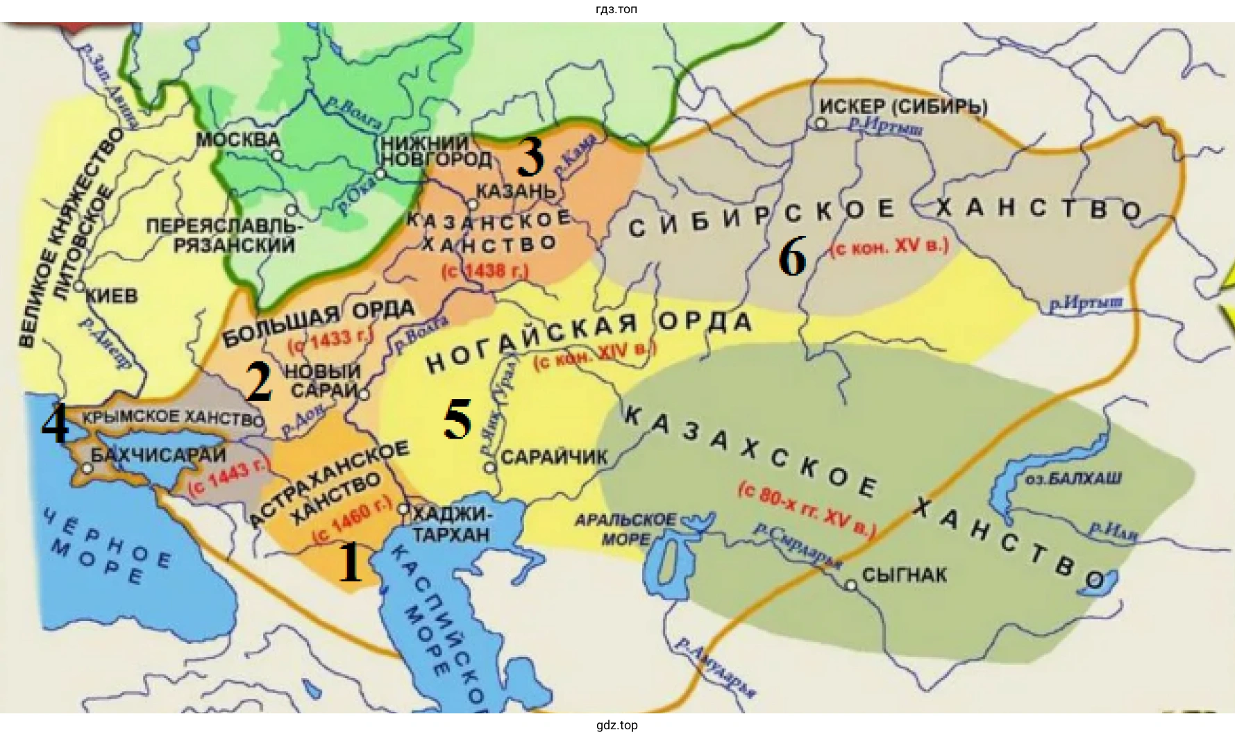 Работа с картой. Параграф 26. Распад Золотой Орды и его последствия. Тема 5. Народы и государства степной зоны Восточной Европы и Сибири в XIII — XV вв.. Часть 2 - номер 2, страница 72.