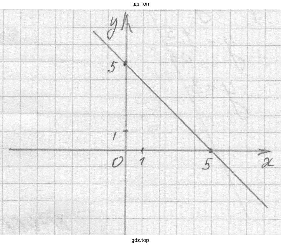 4. Отмечаем на координатной плоскости точки $(0, 5)$ и $(5, 0)$ и проводим через них прямую.