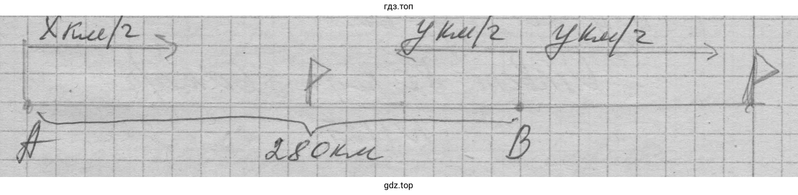 Для решения задачи введем переменные. Пусть $v_1$ км/ч — скорость автомобиля, вышедшего из пункта А, и $v_2$ км/ч — скорость автомобиля, вышедшего из пункта B. Расстояние между пунктами $S = 280$ км.