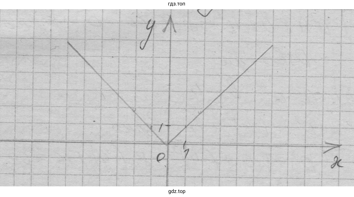 Ответ: График уравнения $y = |x|$ состоит из двух лучей: $y = x$ при $x \ge 0$ и $y = -x$ при $x < 0$. Оба луча выходят из начала координат.