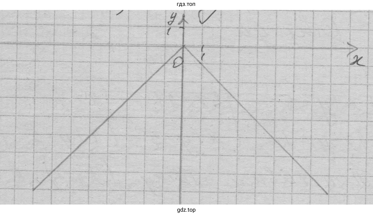Ответ: График уравнения $y = -|x|$ состоит из двух лучей: $y = -x$ при $x \ge 0$ и $y = x$ при $x < 0$. Оба луча выходят из начала координат и направлены вниз.