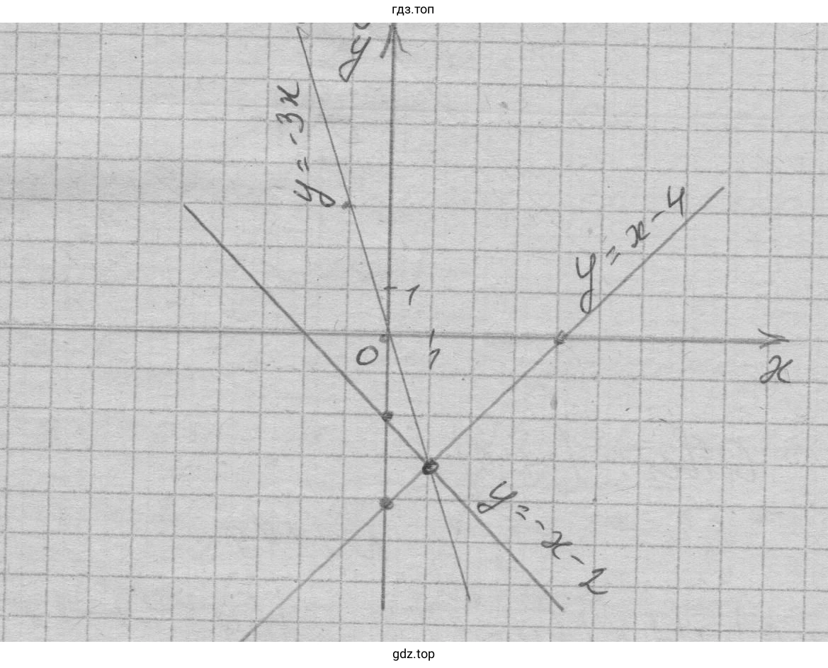 а) Для графического решения системы уравнений $ \begin{cases} y + 3x = 0 \\ x - y = 4 \\ x + y = -2 \end{cases} $ необходимо построить графики всех трех уравнений в одной координатной плоскости. Решением системы будет точка пересечения этих графиков.