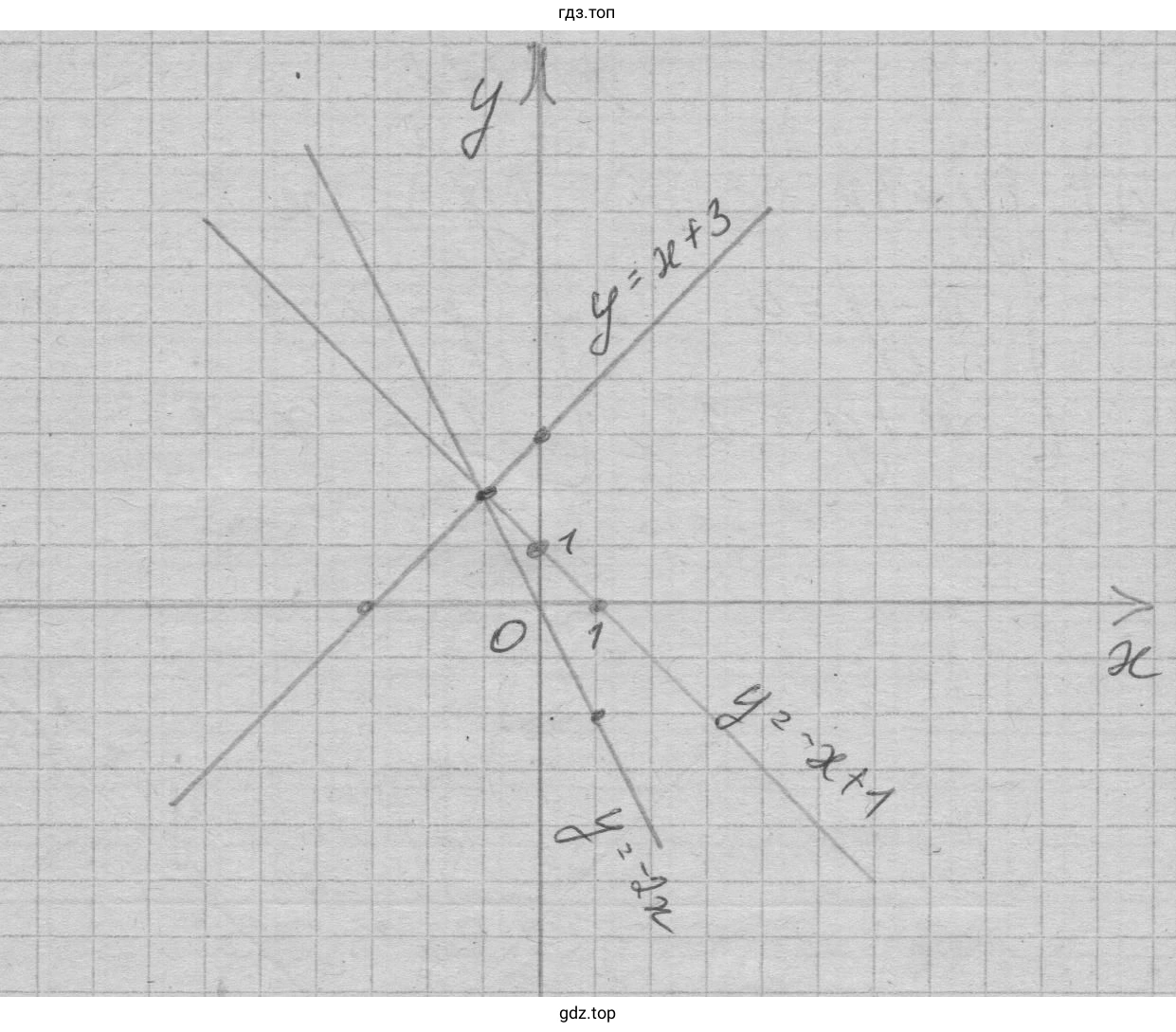б) Для графического решения системы уравнений $ \begin{cases} x + y = 1 \\ y - x = 3 \\ 2x + y = 0 \end{cases} $ построим графики всех трех уравнений в одной координатной плоскости.