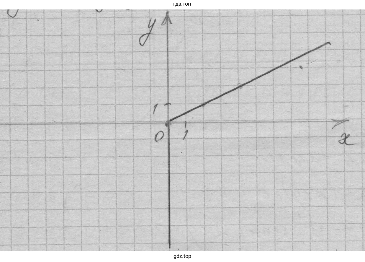 Это уравнение задает прямую линию. Условие $y \ge 0$ для этой прямой эквивалентно условию $\frac{1}{2}x \ge 0$, то есть $x \ge 0$. Таким образом, частью графика является луч, выходящий из начала координат $(0,0)$ и проходящий через точку, например, $(2,1)$. Этот луч расположен в первой координатной четверти.