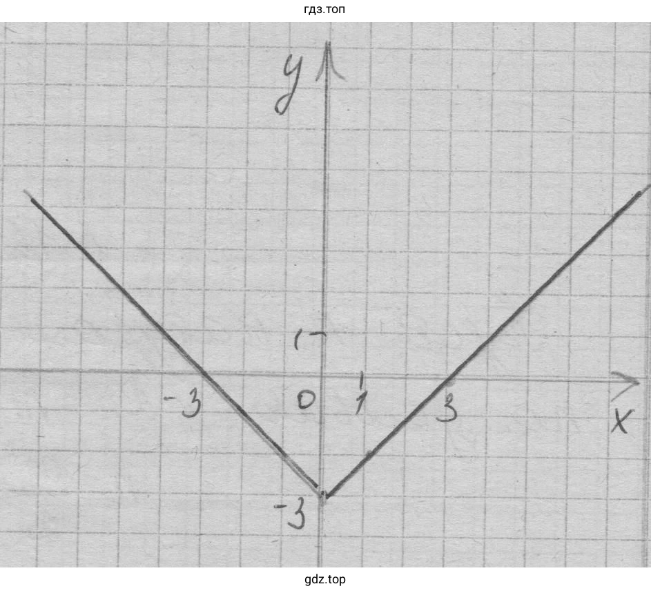 Ответ: График функции $y = |x| - 3$ получается путем сдвига графика функции $y = |x|$ на 3 единицы вниз вдоль оси OY. Это "уголок" с вершиной в точке $(0, -3)$, ветви которого направлены вверх.