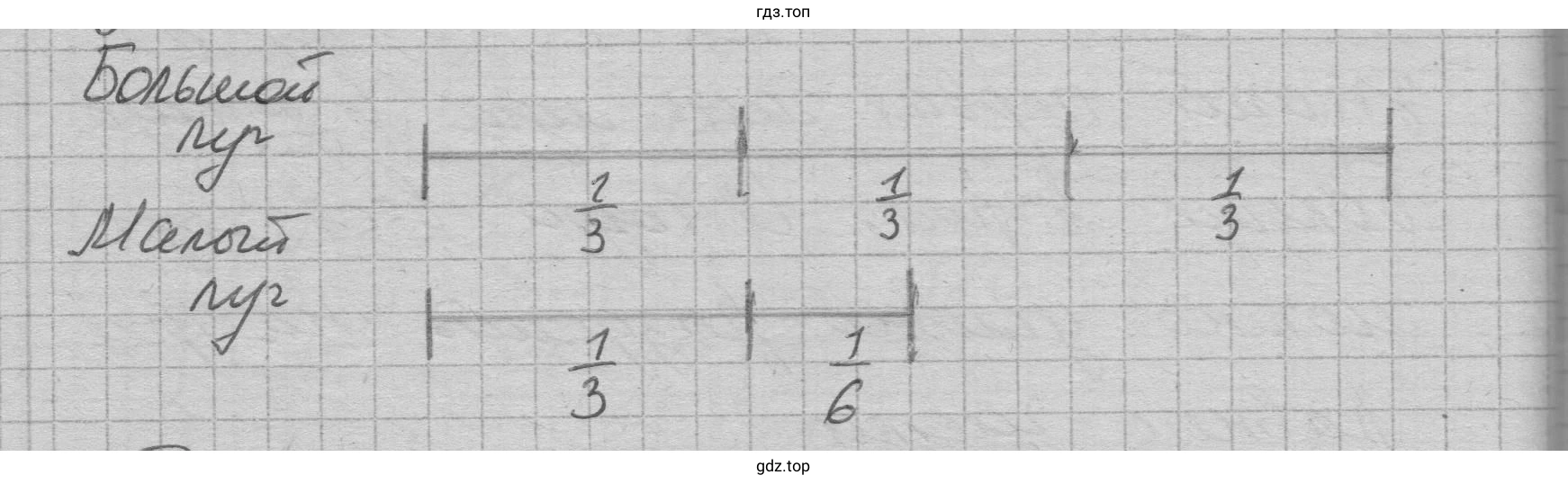 Итак, первая часть равна большого луга, которую косила вся артель половину дня; большого луга – это вторая часть, которую косила половина артели вторую половину дня.