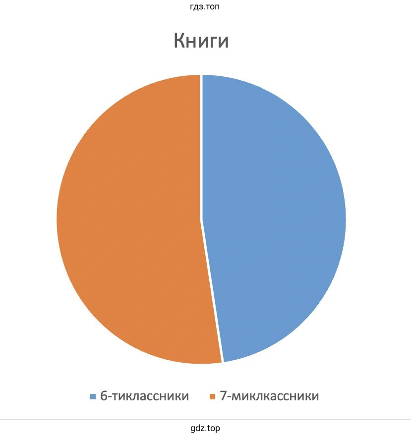 Покажите на круговой диаграмме соотношение между количеством книг (в процентах), собранных учениками шестых и седьмых классов.
