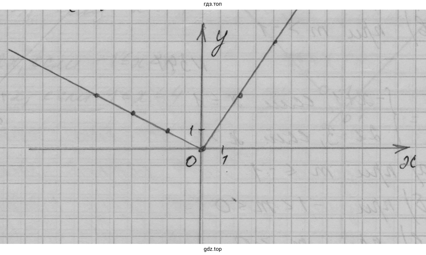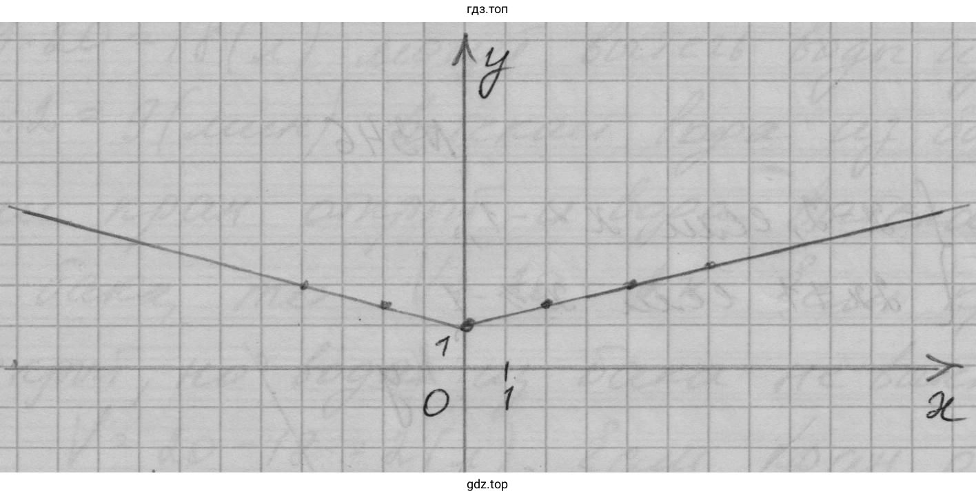 Объединив оба луча, получаем искомый график. Он симметричен относительно оси Oy и представляет собой график функции $y = |x|$, сжатый к оси Ox в 4 раза (коэффициент 0.25) и сдвинутый на 1 единицу вверх.