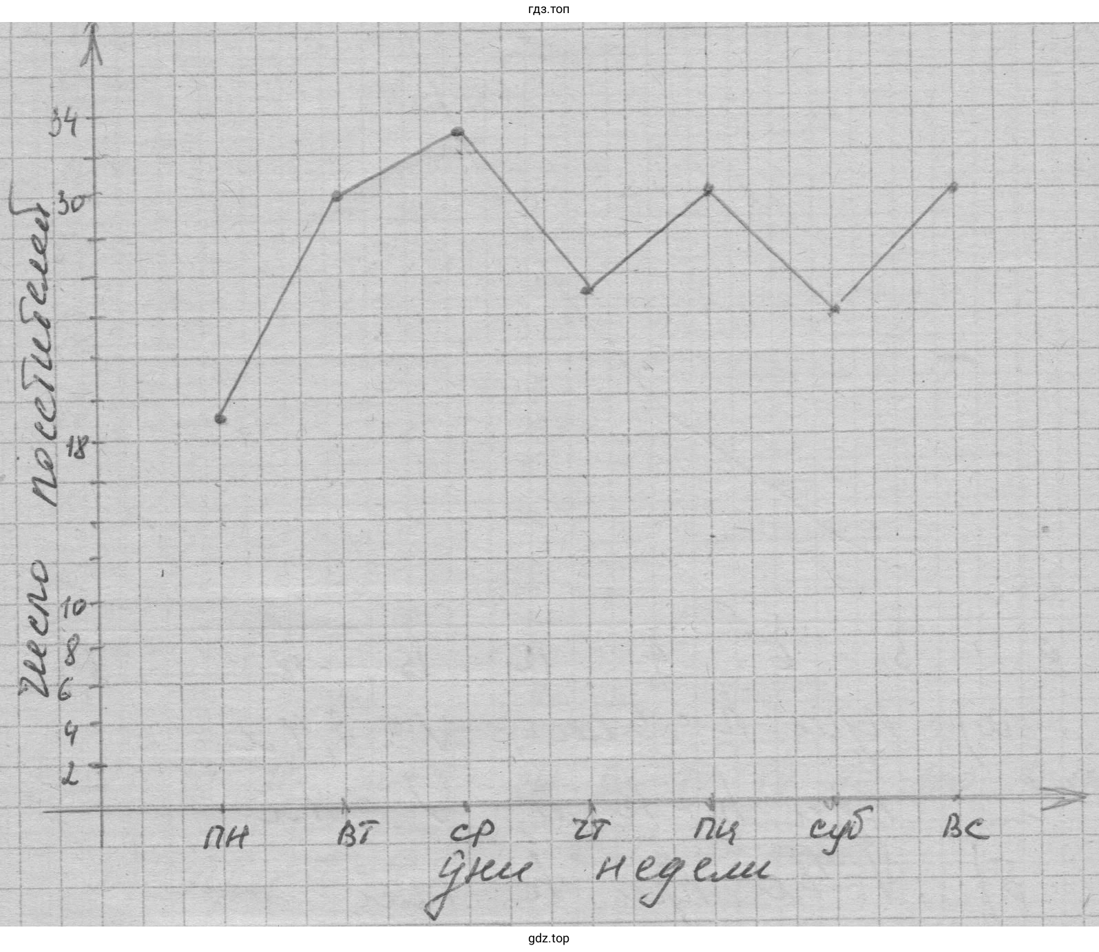 Построим график, где по горизонтальной оси отложены дни недели, а по вертикальной — число посетителей. Соединим соседние точки отрезками, как требуется в задаче.