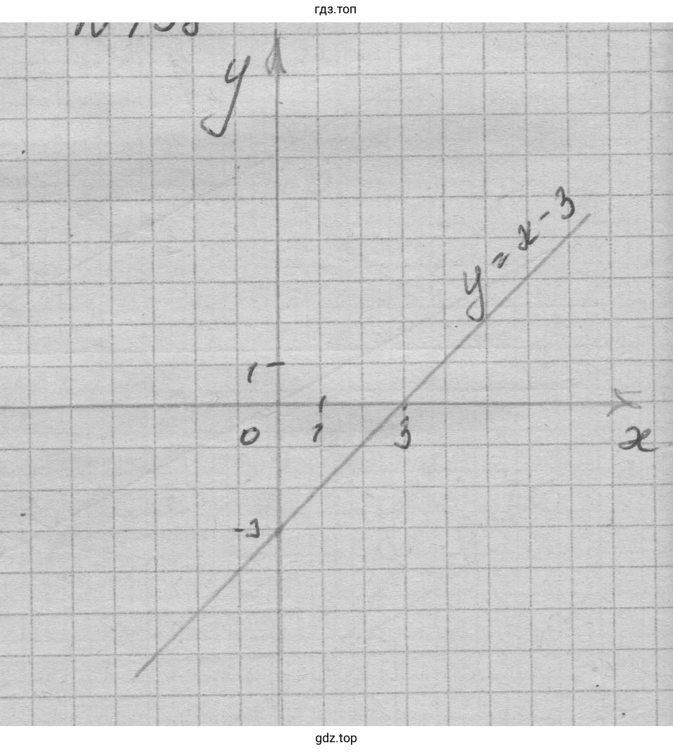 Ответ: График функции $y = x - 3$ — это прямая линия, проходящая, например, через точки с координатами $(0, -3)$ и $(3, 0)$.