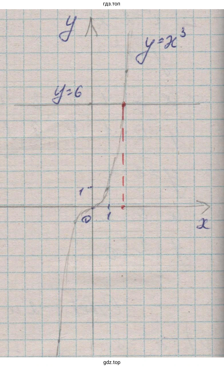 Кубическая парабола является монотонно возрастающей функцией, поэтому она пересекает любую горизонтальную прямую только в одной точке. Абсцисса этой точки и есть решение уравнения $x^3 = 6$, то есть $x = \sqrt[3]{6}$.