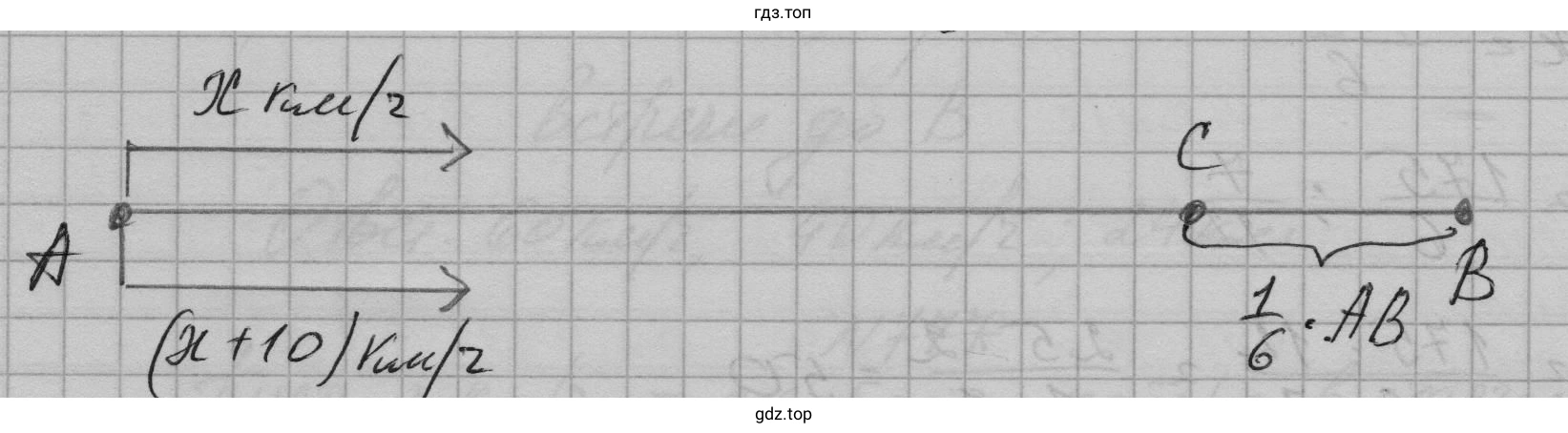 Пусть х км/ч – скорость первого автобуса, тогда (х + 10) км/ч – скорость второго автобуса. Зная, что один автобус через прошёл весь путь из A в B, получим расстояние AB = 3,5(x + 10) км. Расстояние от местонахождения второго автобуса до B равно Расстояние, которое прошёл автобус, шедший со скоростью x км/ч до C. С другой стороны AC = 3,5x. Получим уравнение: