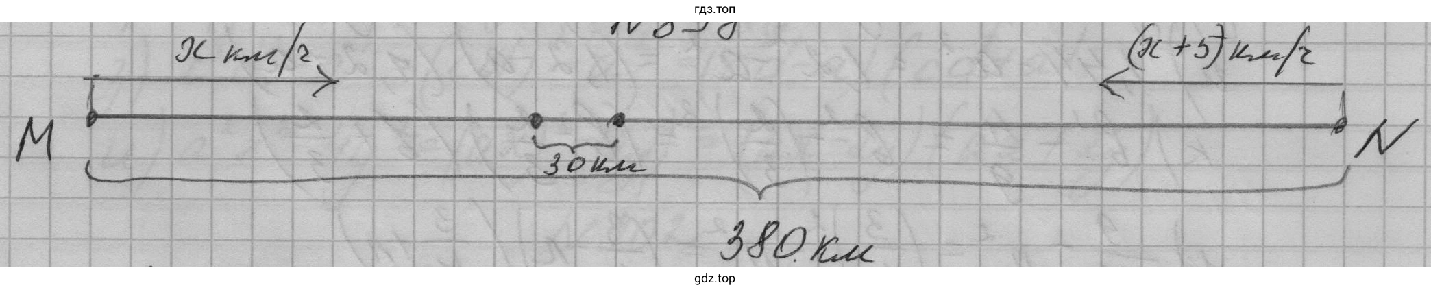 898. Со станций М и N, расстояние между которыми 380 км, одновременно навстречу друг другу вышли два поезда. Скорость поезда, отправившегося со станции N, была больше скорости другого поезда на 5 км/ч. Через 2 ч после отправления поездам оставалось пройти до встречи 30 км. Найдите скорости поездов.