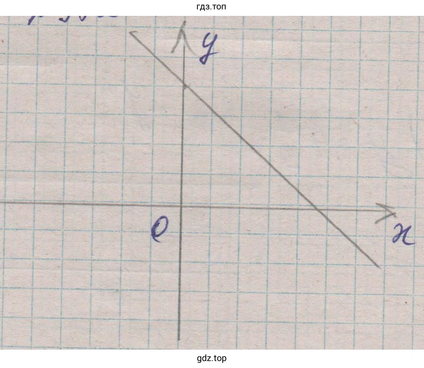 Ответ: График функции $y = -0,9x + 4$ — это прямая, которая проходит через I, II и IV координатные четверти, пересекая ось ординат в точке $(0, 4)$.